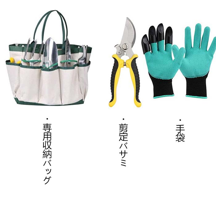 【8点セット】ガーデニングツール 園芸工具 セット ガーデニングセット 手袋・収納バッグ付き 園芸作業ツール 植木剪定 園芸用品 プランダー移植 ガーデニング雑貨 DIY 工具 道具 スコップ シャベル 剪定ばさみ 除草はさみ ハサミ アルミ合金製 アウトドア キャンプ用品