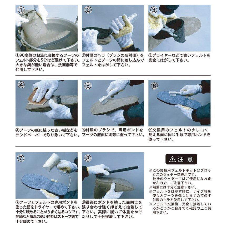 プロックスウェダー専用のフェルトソール補修キット 専用ボンドとブラシ、サンドペーパーがセットされすり減ったフェルトを交換できます。 サイズはプロックスウェダーの対応足サイズに準じています。 PX320、322、323、330、332、333、335、337、340、344、554、556、557、560、561、566、585,586、VC504シリーズに対応。 ※PX872、550シリーズには対応しておりません。「PX3393413汎用フェルトソールリペアキット」をお買いもとめください。 ・商品コード:PX583 ・カラー:ブラック ・サイズ:M・L・LL ・専用ボンベ2本、ブラシ、サンドペーパー付