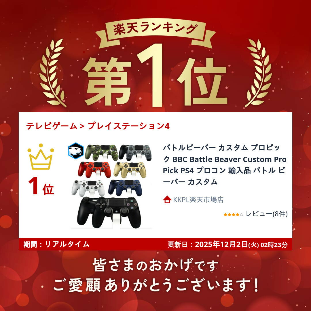 バトルビーバー カスタム プロピック BBC Battle Beaver Custom Pro Pick PS4 プロコン 輸入品 バトル ビーバー カスタム 送料無料 この商品について コントローラー ps4 バトルビーバー プロピック カスタム バトルビーバーカスタム プロピック BBC Battle Beaver Custom Pro Pick PS4究極のカスタマイズでゲーム体験が進化!Battle Beaver Custom Pro Pickは、PS4向けの高性能カスタムコントローラーで、特にゲーマーに人気です。背面ボタンやスマートトリガーが装備されており、軽さとクリック感が非常に優れているため、長時間のゲームでも快適にプレイできます。・背面ボタンで追加の機能を簡単に操作、ゲームプレイが効率化・軽量設計で、従来のDualShock 4よりも軽く、操作性が向上・スマートトリガーで、反応速度とクリック感がさらに向上・カスタマイズ可能で、プレイヤーのスタイルに合わせて最適な設定が可能ゲームに特化したこのコントローラーは、プロゲーマーや本格的なプレイヤーにとって理想的な選択です。高い性能と使いやすさを両立させた究極のコントローラーをお楽しみください。【コントローラーのカスタム】背面ボタン:左 X / 右 Oスティック:Magneto Mech振動:なしトリガー:スマートトリガーバンパー:スマートバンパー スマートトリガーなのでマウスの様に連打しやすい! 純正品のパーツを流用しているので、耐久性が高い! 振動ユニットごと取り外しているので超軽量! 1 12時までのご注文確定で当日発送 (土日祝は9時)1