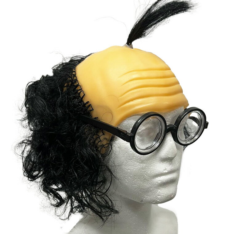 厚底メガネ付 ハゲ かつら ハゲ 親父 スキンヘッド 坊主 はげ 博士 なみへい 波平 コスチューム コスプレ お面 仮面 変装 被り物 結婚式 宴会 学園祭 婚式 宴会 学園祭