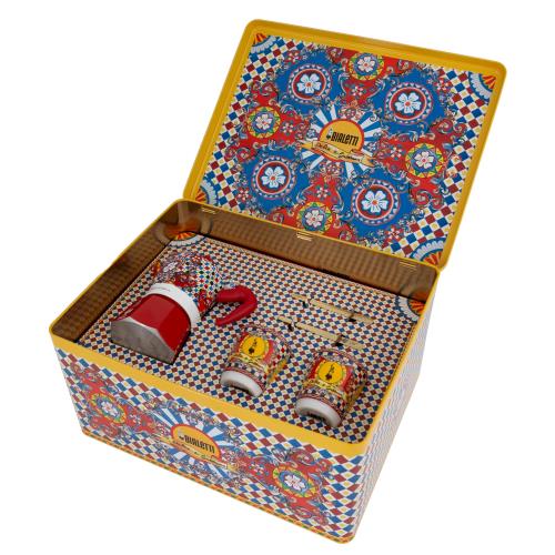 ビアレッティとドルチェ&ガッバーナが イタリアン コーヒースタイルを彩ります。 【イタリア100年の伝統を手元に】ビアレッティは100年以上コーヒー関連器具を作り続けてきたイタリアの老舗ブランドです。アイコンともいえる「モカエキスプレス」は1933年の発売以降、世界中のコーヒーファンに愛されるエスプレッソメーカーです。 【 ビアレッティ正規品 】が『出荷元』および『販売元』と表示されるビアレッティ製品は、ビアレッティの日本法人であるビアレッティジャパン株式会社による正規品ですので安心してお買い求めください。 【ドルチェ&ガッバーナとの限定エディション】 ドルチェ&ガッバーナの美学に欠かすことのできない芸術的な工芸品、シチリアの風景や独特な色彩へ敬意を表し、シチリアの伝統的な馬車、シチリアン・カレットのモチーフをモカエキスプレスで再現しています。 【セット内容】 ・ビアレッティドルチェ&ガッバーナ モカエキスプレス 2カップ ・ビアレッティドルチェ&ガッバーナ エスプレッソカップ 2客 ・ビアレッティドルチェ&ガッバーナ ステンレススティールのマドラー2本