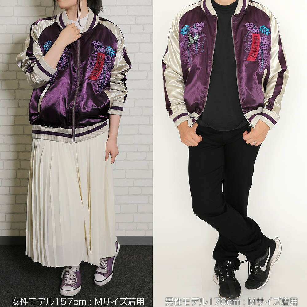 蟲柱『胡蝶しのぶ』と咲き誇る『藤の花』が守ってくれるかも!?圧巻の刺繍スカジャン・『しのぶの髪飾り』をはじめ、札風にデザインされた『悪鬼滅殺』の文字、『藤の花』などを定番の和風モチーフと組み合わせたデザイン。・『しのぶ』と咲き誇る『藤の花』があなたを守ってくれるかもしれない一着です。・20万ステッチ超えの刺繍で満足感あるこだわりの仕上がり!・中綿が無いので軽くて着心地の良いスカジャンは、3シーズン着回せる優れもの。・Tシャツや、パーカーの上からさらっと羽織るだけで様になるアイテムです。ご注文、ご決済確定後2営業日以内に発送いたします。ご注文、ご決済確定後2営業日以内に発送いたします。