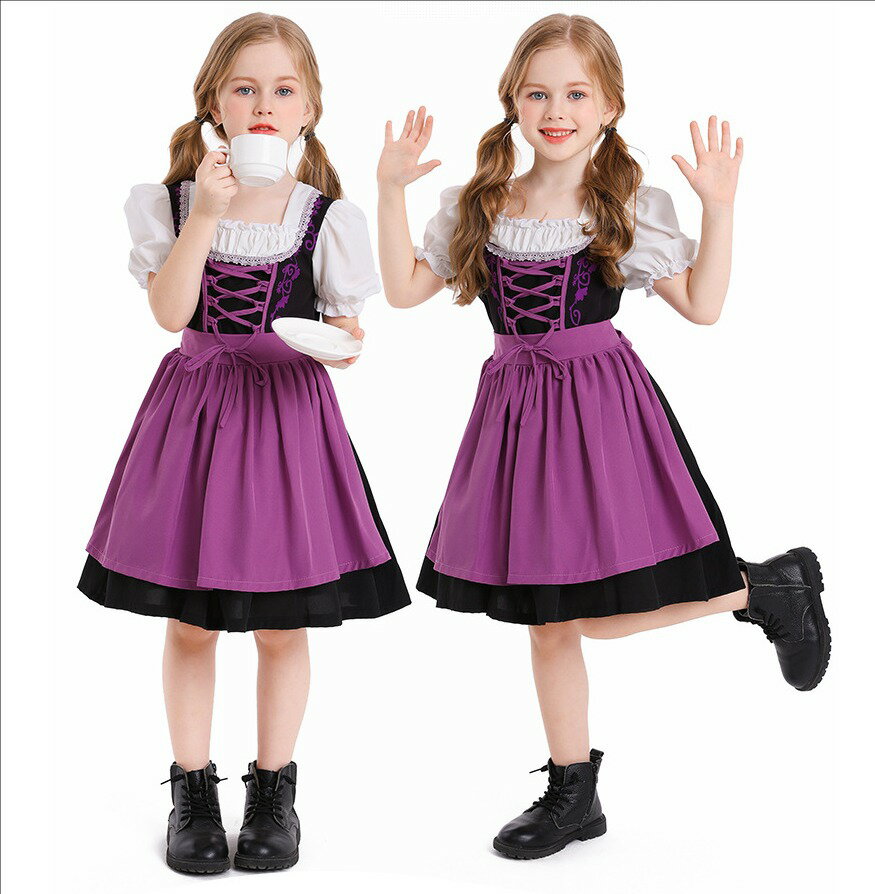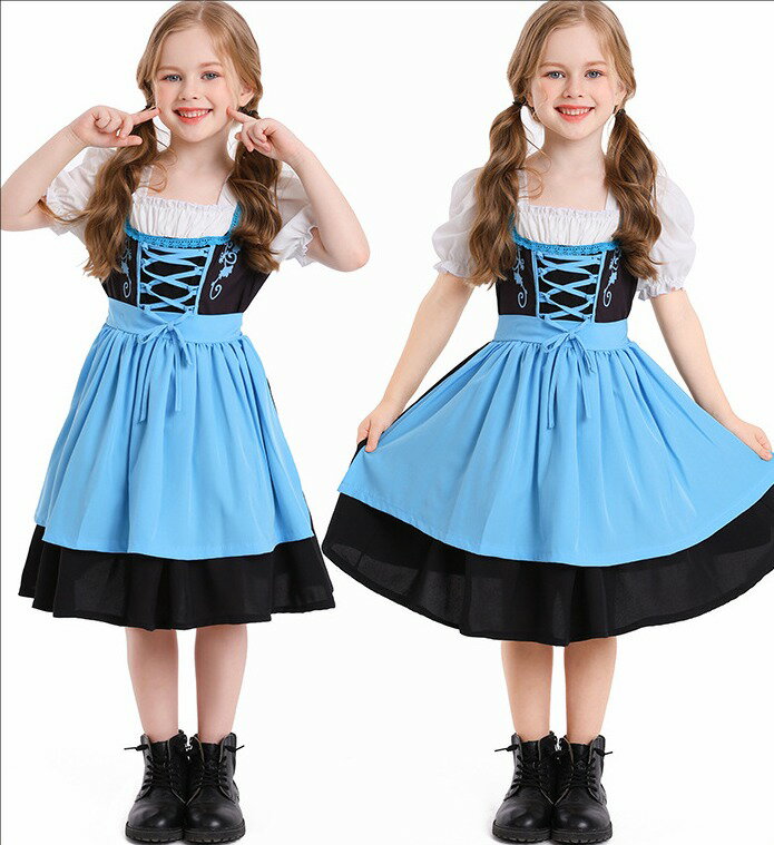 キッズワンピース 子供コスチューム メイドコスチューム メイド服 ショート丈 民族衣装 森の妖精 なりきり ハロウィン衣装 女の子 可愛いコスプレ衣装 変装 仮装 ハロウィンパーティー イベント 舞台劇 舞台衣装 学園祭 ワンピース+エプロン