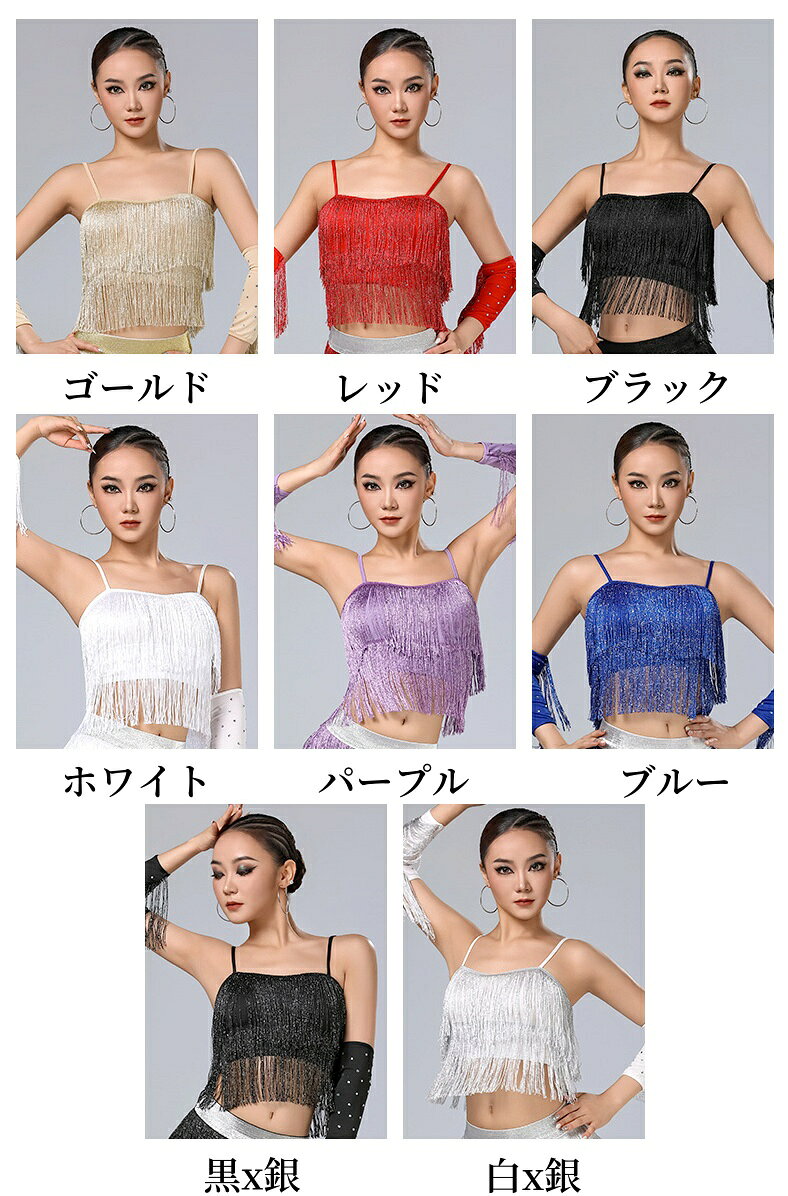 ラテントップス 上下セット レディース 女性 大人 袖カバー スカート 魅力的 ダンス衣装 スカートセット 衣装セット へそ出し キャミソール 大人用ダンス衣装 キラキラ レッスン着 競技着 おしゃれ 演出服 ステージ衣装 練習着 レッスン 団体服 舞台衣装 8色 フリンジ付き