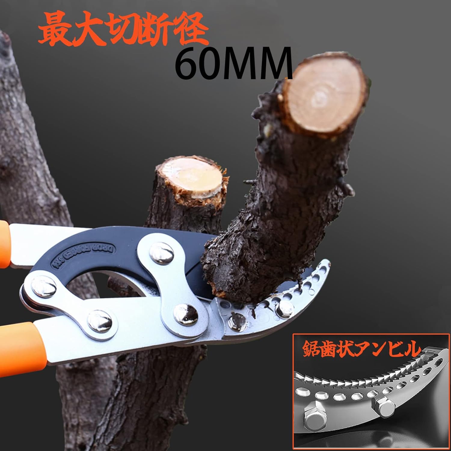 剪定バサミ 園芸ばさみ 太枝切り鋏 切断径60mm 強力型 剪定ばさみ 六段階伸縮 長さ69-103cm 高枝切りバサミ 園芸用ばさみ 園芸用品 刈り込みばさみ 伸縮 園芸鋏 樹の剪定 庭の剪定 木の剪定 伸縮タイプ 庭木 枝切り