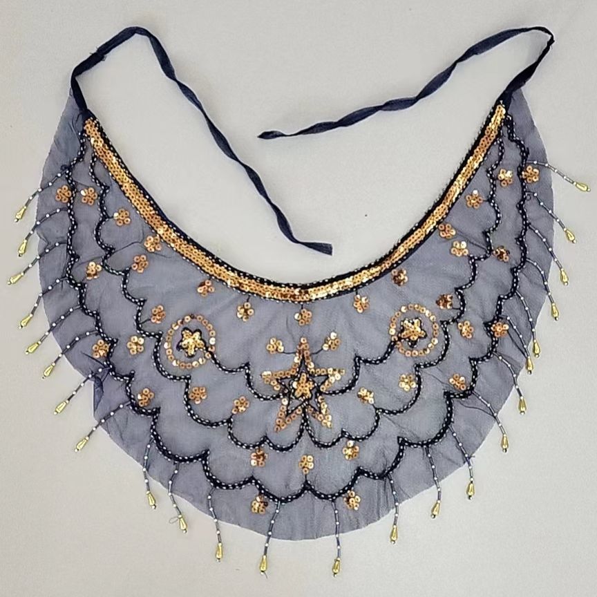スパンコールやビーズがたっぷりあしらわれた ゴージャスなフェイスベールです。 アラビアンダンスなどの発表会にはもちろん 余興やコスプレグッズとしてもおすすめです♪ 【サイズについて】 画像をご参照下さい。 【カラーについて】 生産ロットにより柄の出方や色の濃淡が異なる場合がございます。 お使いのモニターや撮影時の光の加減などにより 画像と実際の商品のカラーが異なる場合もございます。 予告なしにカラーやデザインなどの変更がある場合もございます。 【素材について】 ポリウレタン 【補足説明】 ※商品の性質上、手洗いでのお洗濯をお勧めしております。 ※色落ちする場合がございます 手洗い後、ご着用くださいますようお願い致します。