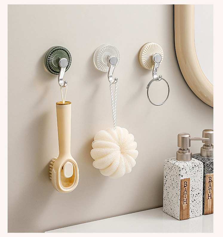 穴あけ工事不要の吸盤式フックです。 浴室、キッチン、玄関などの物掛け用に◎ 【サイズについて】 画像をご参照ください。 【カラーについて】 生産ロットにより柄の出方や色の濃淡が異なる場合がございます。 お使いのモニターや撮影時の光の加減などにより 画像と実際の商品のカラーが異なる場合もございます。 予告なしにカラーやデザインなどの変更がある場合もございます。 【素材について】 ABS、PC、TPU、PET