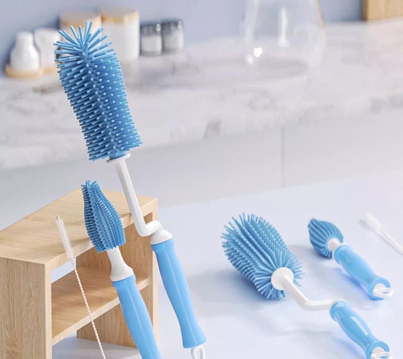 送料無料 哺乳瓶ブラシ 乳首ブラシ 3点セット ブラシセット ボトルブラシ 哺乳びん 水筒 グラス シリコン ソフト 回転 吊り下げ 洗浄 ピンク ブルー ライトグレー シンプル 便利