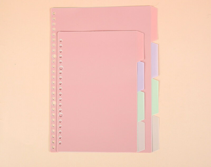 バインダーやルーズリーフファイルに差し込みできるインデックスシートです。 カラーの違う4枚セットで、仕切りに便利♪ A5、B5、A4サイズに対応しています◎ 規格:A5 20穴、B5 26穴、A4 30穴 【サイズについて】 画像をご参照ください。 【カラーについて】 生産ロットにより柄の出方や色の濃淡が異なる場合がございます。 お使いのモニターや撮影時の光の加減などにより 画像と実際の商品のカラーが異なる場合もございます。 予告なしにカラーやデザインなどの変更がある場合もございます。 【素材について】 PP