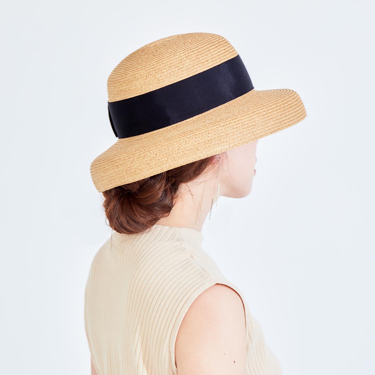 当店オリジナル!夏に嬉しい機能満載、UVカット率97%以上で、通気性が良くむれにくいブレードハット。UPF50+【UPF最高値】で、何もしない状態に比べて50倍の紫外線遮蔽能力を有することを示します。フェイスラインを美しく見せてくれるカサブランカハットは、しっかりと糊をしたお椀のようなブリムの角度が秀逸。トレンドに左右されないベーシックなデザインで、浴衣や着物にもよく似合うクラシカルな太い巾のリボンがポイント、オトナ可愛い♪きれいめな印象に決まります。頭まわりは抗菌防臭加工を施した汗止めテープで覆い、サイズ調整も付いているので頭まわりにジャストフィットできて汗が滴り落ちにくい仕様となっています。自社の国内工場でひとつひとつ丁寧に縫い上げ生産しました。 <紫外線遮蔽率97.7%(検査済)> <UPF50+【UPF最高値】> <サイズ調整可能(アジャスター付)> ◆ Item Information サイズ 頭まわり つば 深さ FREE 約57.5cm 約9.5cm 約10cm 【素材】指定外繊維(紙)80%、ポリエステル20% 【生産国】日本製 【カラー】ブラック / ホワイト 【備考】 ・【専用ハットクリップ/ストラップ(日本製)】の購入はこちら ・【専用ストラップ】の購入はこちら ・直射日光や蛍光灯の長時間の照射で色あせすることがあります。 ・商品写真はできる限り実物を再現するよう心掛けておりますが、モニター・ブラウザ等ご利用環境により色味等差異が生じる場合がありますのであらかじめご了承ください。カサブランカハット[Casablanca hat] - Aurelia - 当店オリジナル!夏に嬉しい機能満載、UVカット率97%以上で、通気性が良くむれにくいブレードハット。UPF50+【UPF最高値】で、何もしない状態に比べて50倍の紫外線遮蔽能力を有することを示します。フェイスラインを美しく見せてくれるカサブランカハットは、しっかりと糊をしたお椀のようなブリムの角度が秀逸。トレンドに左右されないベーシックなデザインで、浴衣や着物にもよく似合うクラシカルな太い巾のリボンがポイント、オトナ可愛い♪きれいめな印象に決まります。頭まわりは抗菌防臭加工を施した汗止めテープで覆い、サイズ調整も付いているので頭まわりにジャストフィットできて汗が滴り落ちにくい仕様となっています。自社の国内工場でひとつひとつ丁寧に縫い上げ生産しました。 model point variations ブラック ホワイト details [Black] details [White] spectification