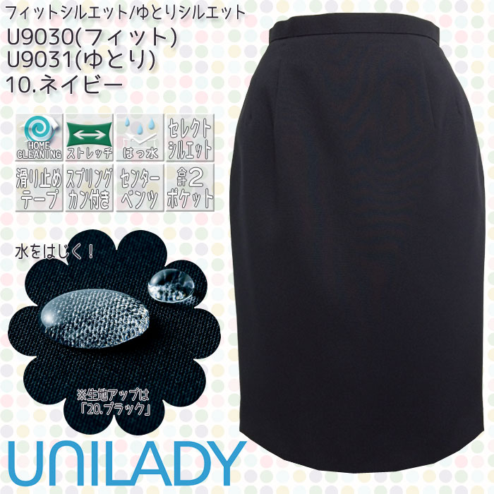 事務服 タイトスカート U9030 U9031 フィット ゆとり 2シルエット オールシーズン ネイビー チャコールグレイ ブラック UNILADY 5-19号