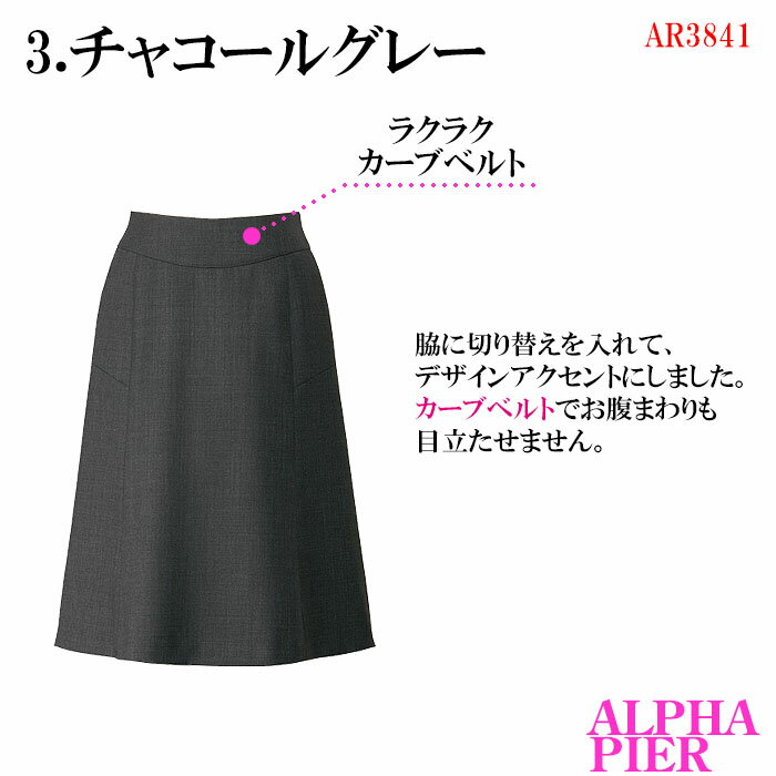 19-23号 事務服 セミフレアスカート AR3841 ブラック チャコールグレー オールシーズン オフィス アルファピア