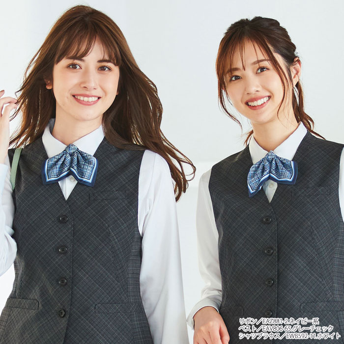 事務服 リボン ワンタッチ EAZ881 ワイン ネイビー レディース ENJOY オフィス