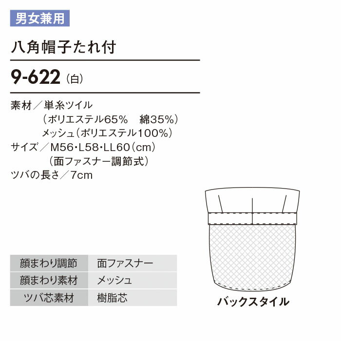 【500円クーポン対象 12/4 20時〜12/11 2時】 [レビュー特典対象] 八角帽子たれ付 9-622 男女兼用 メンズ レディース 常温作業環境 HACCP 食品工場 食品衛生帽子 衛生キャップ フード帽子 軽作業 ハサップ 厨房 給食 制服 ユニフォーム 住商モンブラン