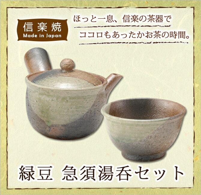 信楽焼 湯呑 陶器 急須 セット 緑豆 急須湯呑セット G5-2709、G5-2710 信楽 食器 器 焼き物 おすすめ ギフト お祝い プレゼント 贈り物 来客用 結婚祝い 誕生日 内祝い おしゃれ かわいい おすすめ お洒落 引き出物 還暦祝い