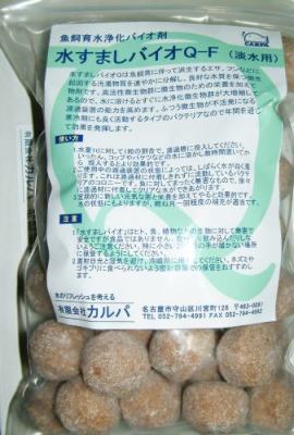 水すましバイオQは魚飼育に伴って派生するエサ、フンなどに起因する汚濁物質を速やかに分割し、 良好な水質を保つ微生物剤です。 高活性微生物郡に微生物のための栄養を加えてあるので、水に溶けるとすぐに水浄化微生物郡が 大増殖して濾過装置の能力を高めます。 ふつう微生物が不活発になる寒冷期にも良く活動するタイプのバクテリアなので年間を通じて効果を発揮します。 使い方 1.水量1tに対して1粒の割合で、濾過槽に投入してください。 いったん、コップやバケツなどの水に溶かし数時間置いてから投入するとより効果的です。 2.ご使用中の濾過装置の状態によっては、しばらく水が白く濁ります。 これは濾過材に付着しきれずに流動しているバクテリアのコロニーです。 魚に対してまったく無害なもので、徐々に濾過材に付着してクリアな水が出来上がります。 3.定期的に新しい元気な菌と栄養を加えてやると効果的です。 水の状態にもよりますが、概ね月一回程度の補充が適当です。 注意 1,「水すましバイオ」はヒト,魚,植物などの生物に対して無害で安全ですが食品ではありません。 食べたり飲み込んだりしないようご注意ください。 特に小さいお子様の手が届かない場所に保管するようにしてください。 2.直射日光と湿気を避け、冷暗所に保管してください。 ネズミやゴキブリに食べられないよう密封容器での保管をおすすめします。 錦鯉販売 錦鯉通販の大谷錦鯉店 鯉 錦鯉1匹より販売 水槽錦鯉も販売中 錦鯉 金魚 水質浄化 水質調整剤 水質調整