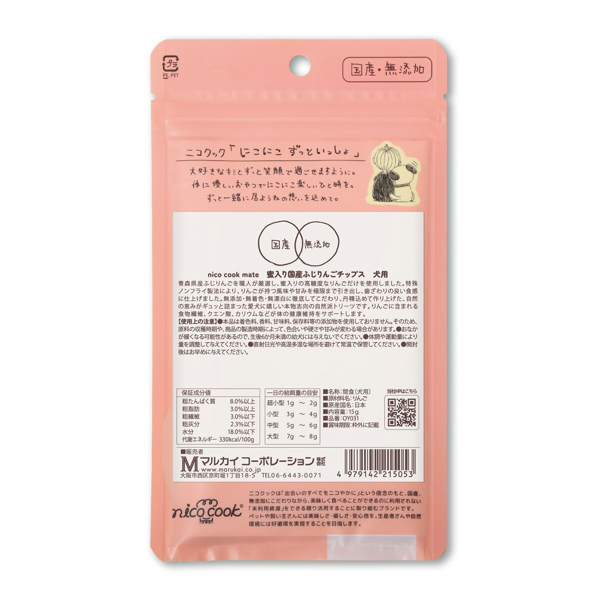 【2000円OFFクーポン!&店内ポイント最大55倍!本日限定!】nico cook ニコクック 蜜入り国産フジリンゴチップス 犬用おやつ 15g 無添加 未利用資源活用