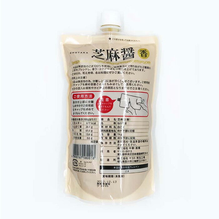 (常温)芝麻醤(香・シャン)ねりごま 1kg|古樹軒 オリジナル商品 食材 食品 調味料 白ごま ごまだれ ゴマダレ ペースト ねりごま 練りごま 芝麻醤 チーマージャン ヅーマージャン バンバンジー 棒棒鶏 タンタンメン 担担麺 担々麺 胡麻豆腐 ごまどうふ