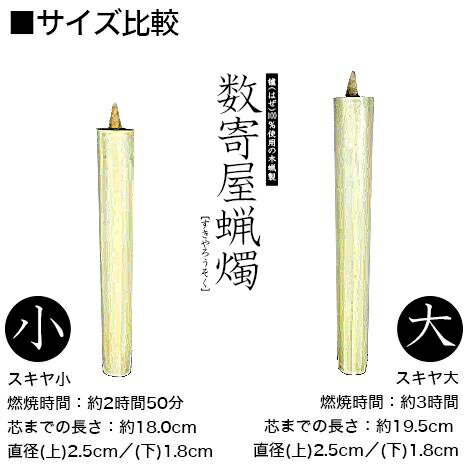 数寄屋蝋燭 木蝋製 白のみ/本大:全長約19.5cm 直径:上2.5/下1.8cm燃焼時間 約3時間和ローソク 和ろうそく スキヤ すきやろうそく 茶事用 お茶室用 棒型【納期目安:営業日の正午受付で当日出荷】