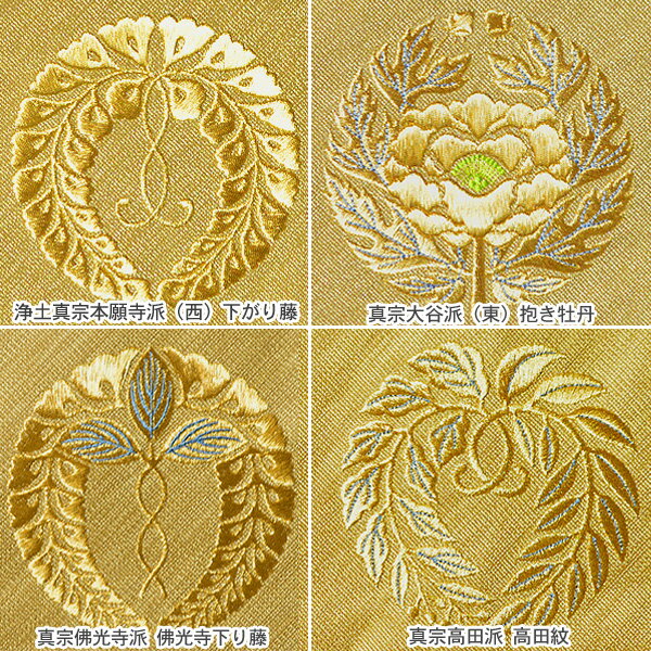 香華堂特選!高級刺繍打敷 ■ 三角打敷とは? 主に浄土真宗のご門徒が、お正月やお彼岸・お盆・法事などの行事の際、仏壇の中の、上卓(うわじょく)と前卓(まえじょく)に掛ける敷物の事です。 通常、前卓用(大きい方)に上卓用の小さい打敷もセットで販売しておりますが、項目選択でご指定いただければ上卓用なしでもご購入いただけます。 基本的には仏事の際のお荘厳として掛けるものですが、普段でも仏壇をおしゃれに設えたい、という場合は使用していても間違いではありません。ただその場合、普段使い用と行事用とを分けた方が良いでしょう。 また、裏地は織柄入りの白生地となっており、中陰の間や葬儀の際はこの白生地を表にしてご使用いただけます。 ■ 打敷のTPO 上述の通り、喪中は白もしくは無彩色の打敷を使用し、それ以降は色柄のついたものを使用します。また、七回忌までの法要では華美な柄を避けるのが望ましいと言われています。 ほか、6月~9月のお彼岸前までは涼しげな素材の夏物を、9月の彼岸入り~翌年の6月頃までは重厚な素材の冬物を掛けるのが一般的です。 ※現代金襴で仕立てられている物の中には、季節に関係なく使える柄もございます。 ■ 刺繍について 香華堂特選刺繍打敷は、精密なミシン刺繍を施されています。 また、品名に「高級手振り刺繍」とあるものは、ミシンの針の往復を手の動きによって動かし、図案を描きだす「手振り刺繍」の技法で作られています。 機械に読み込ませたパターンデータではなく、元となる図案を見ながら手で描き出す職人技。手仕事のため刺繍の表情は1点1点違いが生まれ、機械制御には出せない「味」をお楽しみいただけます。 ■免責■…予めご了承下さい ※サイズにより、打敷本体の大きさと絵柄のバランスをとるために柄ゆきが多少変化いたします。 ※製造ロットやタイミングにより、刺繍の向きや糸色の配置が予告なく変更になる場合がございます。また、基本的に色のご指定は承っておりません。 ※お使いのパソコン・モニター環境などにより実物の色味と若干違って見える場合がございます。 ※商品によって若干の誤差がございます。 季節冬用(9~6月頃) 材質【表】金綴・合繊 【裏】人絹白緞子(織柄入) 上卓用下卓用のサイズ詳細商品画像に記載 【うちしき・おうちしき・御打敷・打ち敷き・打布・内布・仏壇飾り・おしょうごん・墓参り・祥月命日・回忌・月忌・年忌・法要・法事・お彼岸・お盆・正月・仏事・おわたまし・入仏法要・遷仏法要・中陰法要】