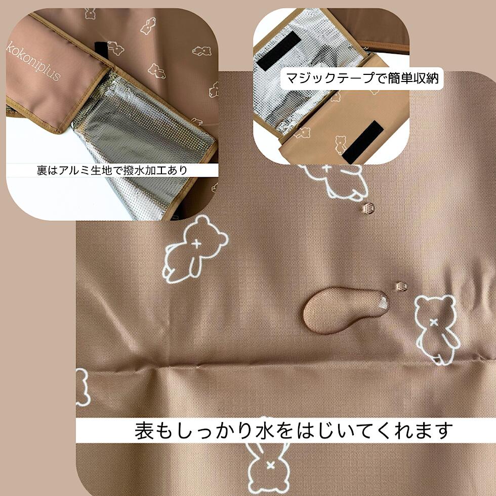 3点までゆうパケット発送可能 color beige / brown 収納はお子さまも扱いやすいマジックテープ式!! 素材もしっかりとしています!! 折りたたむと12×22cmと更にコンパクトになるので リュックや鞄にスムーズにしまうことができます!! 表裏、撥水加工が施されており お手入れのしやすさにもこだわっています ★ご注意★ 縫製の都合上、多少サイズが異なる場合がございます。 洗濯や乾燥はお避け下さい。 汚れた場合は濡れたタオルに中性洗剤をつけて、 優しく拭き取ってください。 直射日光の当たる場所に放置しますと、 日焼けや色落ちの原因になります。 ◎掲載画像につきましては、 お客様のご利用の端末やモニターの設定、 それぞれの写真の撮影状況などの違いにより、 実際の色合いと多少異なる場合がございますので あらかじめご了承ください。 ※生地の生産ロットにより、 多少色味が変わる場合がございます。 サイズ等 ◎本体サイズ 縦:約900mm 上辺横:約600mm ◎本体重量:138g ◎材質:表地 布製ポリエステル・裏地 アルミ ◎カラー:ベージュ、ブラウン