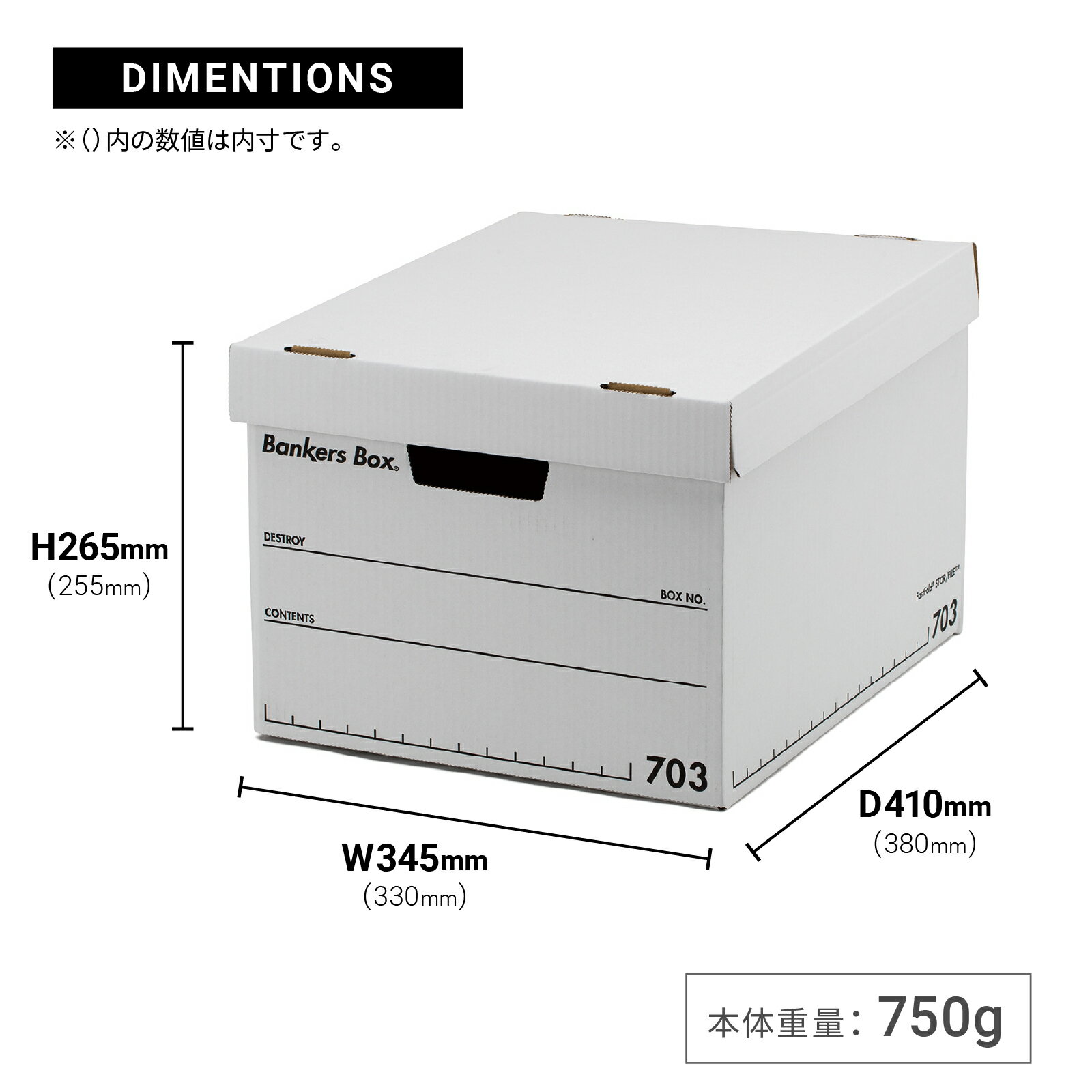 ※この商品は3枚1パックでの販売です 商品説明 Fellowes(フェローズ)バンカーズボックス 703sボックス定番のモデル。A4ファイルが収納目安。 ・フェローズ独自の組み立て方法 FastFold(ファストフォルド) を採用し、わずか3秒で本体の組み立てが可能。 ・モダンでミニマムなデザインは、並べても積み重ねても美しく整います。 ・自由に書き込んだりセルフカスタムするための余白と、付箋やラベル・マスキングテープをまっすぐ貼れるようガイドを設けています。 ・構造面では、組み立て方の簡易化に加え、糊付け箇所を多くして耐荷重性能を高めています。 サイズ ■本体サイズ(外寸) W345 x D410 x H265mm ■本体サイズ(内寸) W330 x D380 x H255mm ■本体重量 750g カラー ■ブラック(FE-1005901) ■ブルー(FE-1006001) ■レッド(FE-1006301) ■ウッドグレイン(FE-1006601) 商品説明 積み重ね5段まで ■耐荷重:30kgf ■商品内容:ボックス本体×3、フタ×3 ■サイズ目安:とじ厚50mmのA4ファイルが5冊収納。また、同シリーズの208sマガジンファイルまたは4311バインダーパックが3つ収まります。 シリーズ Fellowes 関連ワード FE-1005901 FE-1006001 FE-1006301 FE-1006601 バンカーズボックス 収納ボックス ファイルボックス 書類保管 文書保管 Fellowes フェローズ 公式 KOKUYO コクヨ
