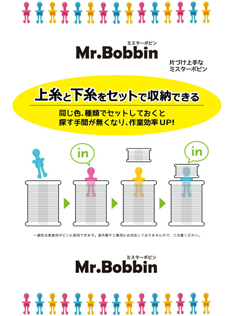 便利用品! 片付け上手なミスターボビン 1袋 8個入り 同色のミシン糸とボビンをセット出来ます。 同じ色、種類でセットしておくと 探す手間が無くなり、作業効率UP! 動画あります♪ 商品名:ミスターボビン 内容量:8個入り 材質:ポリアセタール 生産国:日本 ※実際の色目と多少異なる場合があります。 ※ゆうパケットOK! ※予告なく廃番になる場合がございます。 ▼関連オススメ商品はこちら! ボビン各種 メーカー希望小売価格はメーカーカタログに基づいて掲載しています
