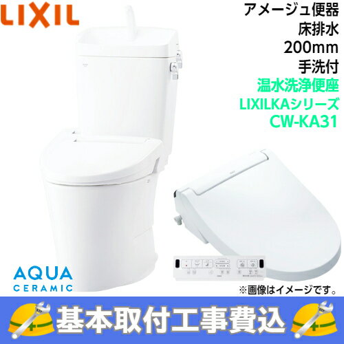 【基本取付工事費込み!】LIXIL トイレ 洋風便器(組合せ便器) YBC-Z30S YDT-Z380 アメージュ便器 フチレス 床排水 手洗付 ECO5 アクアセラミック【シャワートイレCW-KA31】KAシリーズ 取替工事 交換工事 トイレリフォーム