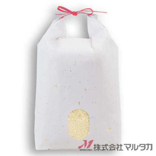 米袋 KH-0911 マルタカ 雲龍和紙 無地 金銀【赤紐】窓付 角底 5kg用紐付 【1ケース(300枚)】・【100枚 】・【20枚】【米袋 5kg】