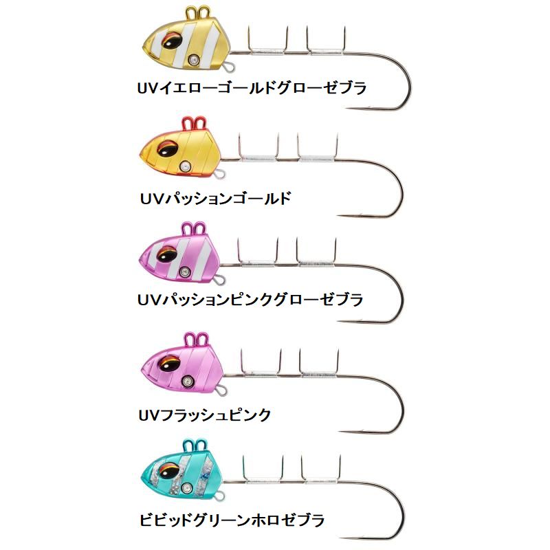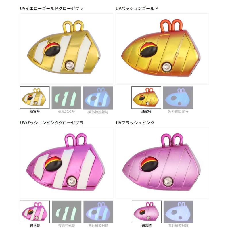 タチウオが狂う!MR(ミラー)仕様テンヤが遂に登場。ローリングアクション時のヘッド乱反射がタチウオのバイトを誘う。業界初MR(ミラー)仕様のタチウオテンヤ。バイブレーション釣法の確立により、テンヤのローリングアクションの重要性が増加。なににも負けないレベルの強烈なフラッシング効果(乱反射)がタチウオを狂わせる。MRはUV(ケイムラ)との相性が抜群。強烈な紫外線照射反応を起こす。クリアな水質、日中、低水温期で威力を発揮。冬場にかけての渋りタチウオ攻略のため、針はミドルフックサイズを採用(固定・針交換式)。◆エサ巻きソフトステン線1m付属