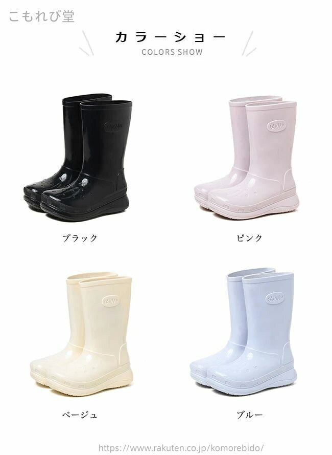 商品詳細 レディースミドル丈レインブーツが新入荷 柔軟性に優れた撥水PVC素材を採用 つなぎ目のない一体型製法で更に防水機能アップ 滑り止め加工が施された厚底でこの上ない安心感 長時間歩いても全然疲れません、フィット感抜群のシルエット 雨靴とは思わないほどのオシャレ感で雨の日にもファッションを貫く いろんなファッションスタイルに似合い、梅雨シーズンに欠かせない一足 定番のブラックを始め、雰囲気の違う4色を用意 雨の日だけではなく、釣り?ガーデニング?洗車などの場合も活躍できます カラー:ブラック ピンク ベージュ ブルー 素材 PVC サイズ(cm) 36 37 38 39 40 41 36 内寸23 37 内寸23.5 38 内寸24 39 内寸24.5 40 内寸25 41 内寸25.5 ヒール 4 ご注意:※素人採寸ですので、若干の誤差がございます、ご了承ください。 中国製 made in China 知っておいて頂きたいこと ※濡れたままの放置や長時間の浸漬はしないで下さい。※汗や雨で湿った状態では特に、注意が必要です。淡い色の衣類?バッグ等を一緒に使用される際にもご注意下さい。※平らな面に置いて測定しておりますので、実際に着用されるとサイズが異なる場合がございますが、予めご了承下さい。※画面上の色はブラウザや設定により、実物とは異なる場合があります。ご了承の上ご注文下さい。