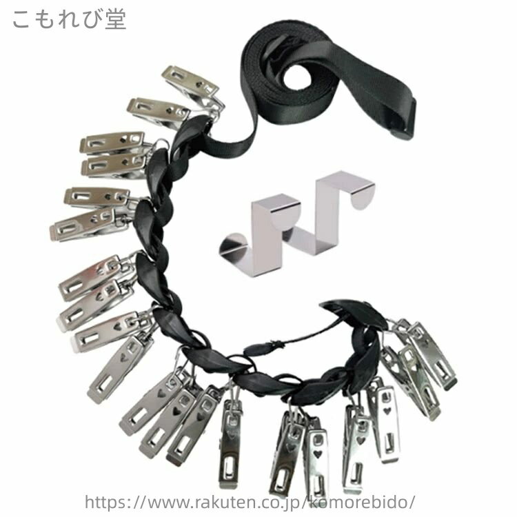 道具不要! 傷や跡がない! 掛けるだけ!クリップの位置も楽に調節可能!ドアハンガー【2個セット】クリップ20個/10個付き形そのままで保管したい物、置き場所に困る物にピッタリ!ドアが収納スペースに早変わり!最大20個収納できるラックです。ドアだけではなく、フックを掛けれる場所があれば設置可能です。道具不要、フックを掛けるだけです。インテリアのようにシンプルなデザインで収納します。ステンレス製の丈夫なクリップ付きで、落ちる心配はありません。バックルをスライドしてクリップの位置も楽に調節できます。帽子だけでなく、ベルトや手袋、マフラーなどの小物も大丈夫です。ドアに傷や跡は残さず、設置場所は自由に決められる。ひとり暮らし、賃貸の方にオススメです。取付方法は簡単1.フックをドアの上部と底部にかける。2.ベルトをフックにかける。3.バックルでベルトの長さを調整。4.クリップに帽子をつければOK。厚みが4.5cmを超えないドアのみ対応します。ドアストッパーなどのあるドアは使えない可能性がございます。購入前にご確認ください。ベルトの長さは2.4m (長さは縮められる)。一部の扉付き棚やクローゼットにも設置可能。扉と上下枠の間はフックが入れるような隙間(約3mm)が必要です。 一つのドアに2列も3列も設置可能。帽子だけでなく、ベルト、手袋、 マスク、プリント、靴下、ネクタイ、マフラー、スカーフなどの小物の収納・整理にも最適です。 サイズ ベルト+クリップ+ドアフック付き サイズについての説明 【セット内容】10連タイプ:ベルト1本+クリップ10個+ドアフック2個20連タイプ:ベルト1本+クリップ20個+ドアフック2個 【サイズ】:幅約2.5cm×長さ約2.2m(20連タイプ)【重量】:クリップ20個を含め 約200g / クリップ10個を含め 約160g【対応ドア高さ】:約1.8m〜2.2m【対応ドア厚み】:約1.8cm〜4cm【用途】:帽子、ベルト、手袋、キーホルダー、スカーフ、ポーチなどの小物の収納・整理※商品のサイズは手作業で測定させて頂いておりますので、若干の誤差があります。※画像掲載の帽子は付属しません。 素材 ポリエステル+ステンレス 色 10連タイプ【2個セット】 20連タイプ【2個セット】 備考 ●サイズ詳細等の測り方はスタッフ間で統一、徹底はしておりますが、実寸は商品によって若干の誤差(1cm〜3cm )がある場合がございますので、予めご了承ください。 ●製造ロットにより、細部形状の違いや、同色でも色味に多少の誤差が生じます。 ●パッケージは改良のため予告なく仕様を変更する場合があります。 ▼商品の色は、撮影時の光や、お客様のモニターの色具合などにより、実際の商品と異なる場合がございます。あらかじめ、ご了承ください。 ▼生地の特性上、やや匂いが強く感じられるものもございます。数日のご使用や陰干しなどで気になる匂いはほとんど感じられなくなります。 ▼同じ商品でも生産時期により形やサイズ、カラーに多少の誤差が生じる場合もございます。 ▼他店舗でも在庫を共有して販売をしている為、受注後欠品となる場合もございます。予め、ご了承お願い申し上げます。 ▼出荷前に全て検品を行っておりますが、万が一商品に不具合があった場合は、お問い合わせフォームまたはメールよりご連絡頂けます様お願い申し上げます。速やかに対応致しますのでご安心ください。