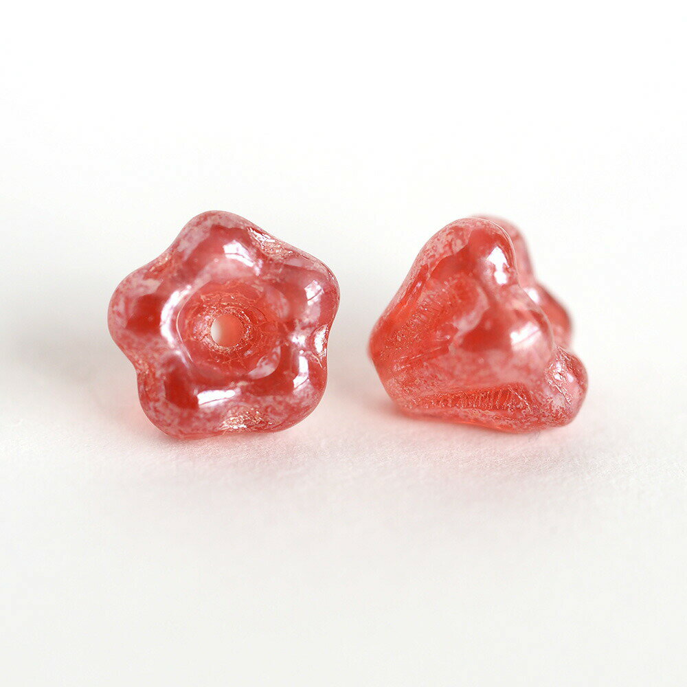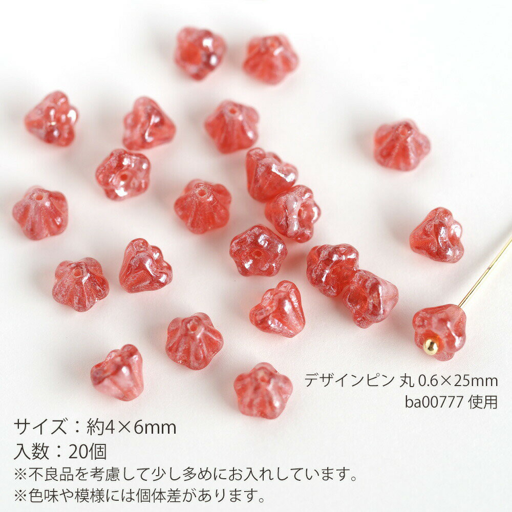 チェコビーズ ベルフラワー 4×6mm ダークピンクマーブルラスター 20個 お花 アクセサリーパーツ ハンドメイド パーツ ピアス イヤリング