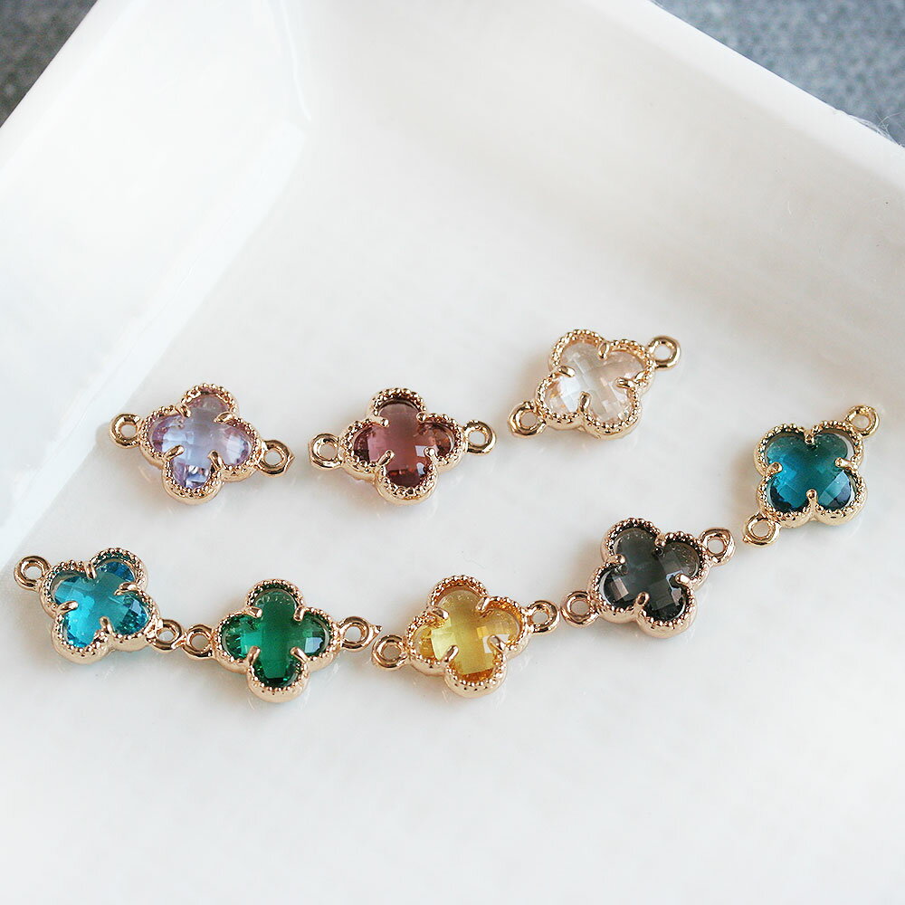【新色カラー追加】両カン付きフラワークリスタル 2個 アクセサリーパーツ つなぎパーツ コネクター チャーム 花 おはな ハンドメイド メタルパーツ メタルチャーム ピアス 手作り
