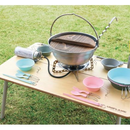焚火 キャンプ 調理焚き火で使いやすいステンレス製ツル付き鍋大人数の鍋料理にオススメ。※フタは天然木のため個体差がございますサイズ:約Φ30.5×12(高さ)cm、(ツル外寸幅約Φ32.5cm)材質:本体・ツル:ステンレス鋼、フタ:天然木、重量:約1.1kg満水容量:約6Lユニフレーム「ユニークな炎(フレーム)を創造する」という理念のもと、1985年に株式会社ユニフレームが創設されました。以来、日本の国産アウトドアメーカーとして日本の風土、文化を背景にしたアウトドアスタイルを創り続けています。自然への畏敬を古くからの伝統としいるこの国でアウトドアの楽しさを引き出す炎を絶えず燃やし続けたいと私たちは願っています。新潟・燕三条の確かな技術で長い間使って行ける確かな道具を作り続けています。