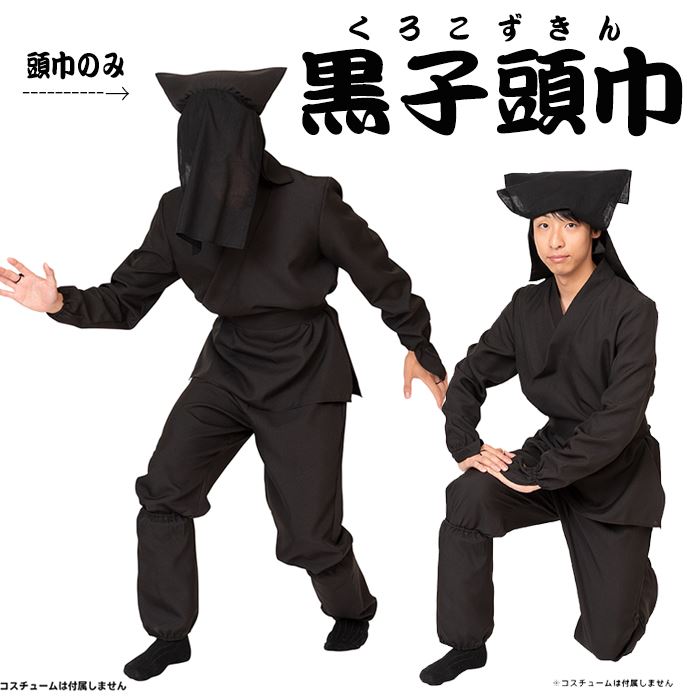 黒子頭巾 黒子 頭巾 コスプレ 仮装 変装 くろこ かぶりもの ずきん 黒色 コスプレ小物 コスプレグッズ クリアストーン 4560320889724