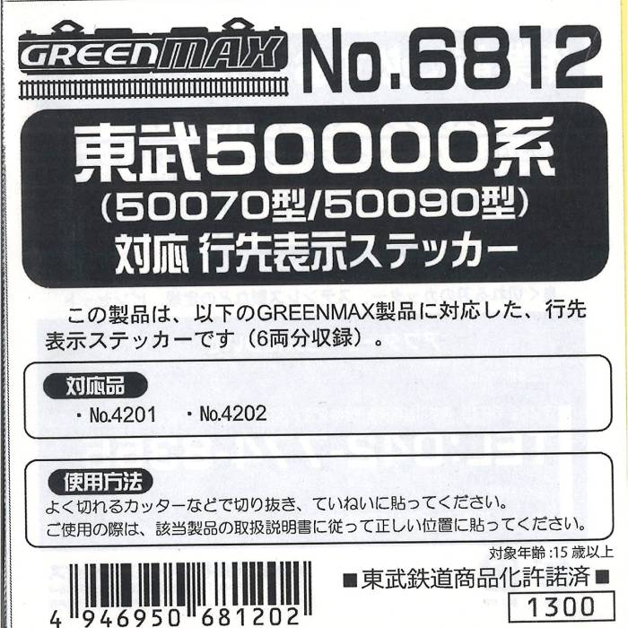 Nゲージ 東武 50000系(50070型/50090型)対応 行先表示ステッカー 鉄道模型 ジオラマ 車両パーツ デカール グリーンマックス 6812