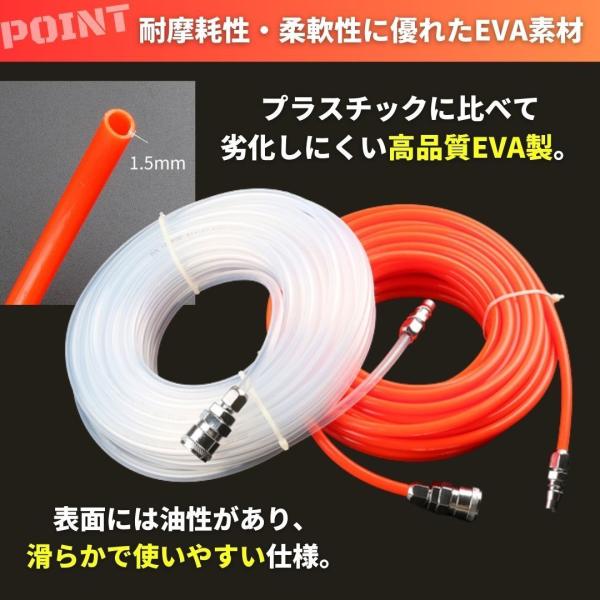 エアホース エアーホース 20m コンプレッサー エアツール ホース 工具 DIY ワンタッチカプラー オレンジ エアー作業 必需品 !エアホース エアー作業 必需品 !コンプレッサー と エアーツール の接続で使用する エアーホース 20m !離れた場所で作業する場合に最適 !●● 用途 ●●・自動車 自転車 の 修理 メンテナンス に・エアーガン 塗料スプレーガン 空気入れ に・エアー工具 エアノズル エアーツール など 空圧器具 に●● 特徴 ●●・ワンタッチカプラー 方式なので、 脱着 カンタン!・ホースの長さは 20m あり、 行動範囲 が ぐっと広がります。・EVA素材 なので、 ねじれ 折れ に強く、硬化しづらくなっています。・柔軟性 軽量性 を兼ね備え、ホースが取り廻ししやすく、作業が はかどります!・耐腐食性 耐高温 耐寒 耐圧 耐食 耐薬品性 耐衝撃性 耐候性 いずれにも優れ、表面劣化を起こしにくく、長時間屋外でも安心してご利用頂けます。 5