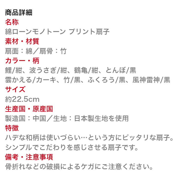 ※柄物は商品により柄、模様の出方が、掲載商品画像と現物で異なる場合がございます。 ※水や汗等により色落ちすることがありますので、ご注意ください。 ※骨折れなどの破損によるケガにご注意ください。