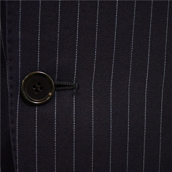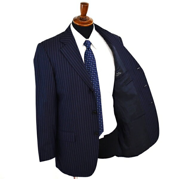 【商品説明】 ・春夏対応。3つボタンシングル。袖口4つ釦開き見せ。背抜き。サイドベンツ。フラップポケット。ネーム刺繍なし。 ・ワンタック。裾ダブル。 ・カラー:ダークネイビーにストライプ ※PC環境によって色味に誤差が生じる場合がございますのでご了承下さい。 ・素材:画像参照 ・製造:八木通商(株) ・型番:「No.4132A」 ・表記サイズ:ジャケット「48」:スラックス「表記不明」 参考 日本サイズ:「M」「Y6」体 程度(実寸サイズを参考にスタッフがスーツサイズを割り出したため、表記サイズと異なっていることがあります。 1つの理由としては前所有者様が寸法直しなどをされた事が考えられます。あくまでスタッフの主観となりますので必ず実寸をご確認下さい。) ・実寸:[ジャケット] 着丈76 袖丈60.5 肩幅44 身幅52 [スラックス] ウエスト(内周)91 股上29 股下75 モモ幅30 裾幅20.5 [単位cm] 「ウエストは最大1.5cmひろげることができます。裾(股下)はシングルで最大7cm出せます。」 ※ウエスト表記サイズは、内周を計測したサイズとなります。 実寸の測り方 参照。 ※商品のサイズ補整等は当店では承っておりません。 現状でのお渡しとなります。 ※手作業での採寸により若干の誤差はご了承ください。 ■状態評価は「表地(全体的)」と、「裏地」の2種類の状態を分けて表記させて頂いております。 表地(全体的)状態:B(ジャケット両肘付近、スラックス臀部、太腿付近にテカリと、ジャケット両袖先、スラックス左前ポケット口と股下にスレが見受けられます。主観ではございますが、その他の状態は良い事から、今後もまだまだご愛用頂けるお品だと思われます。) 裏地状態:JA+JB+A+B+E(ジャケット袖先、脇裏裏地にスレ破れが見受けられます。裏地部分となりますので普段のご着用には問題なく、今後もまだまだご愛用頂けるお品です。)