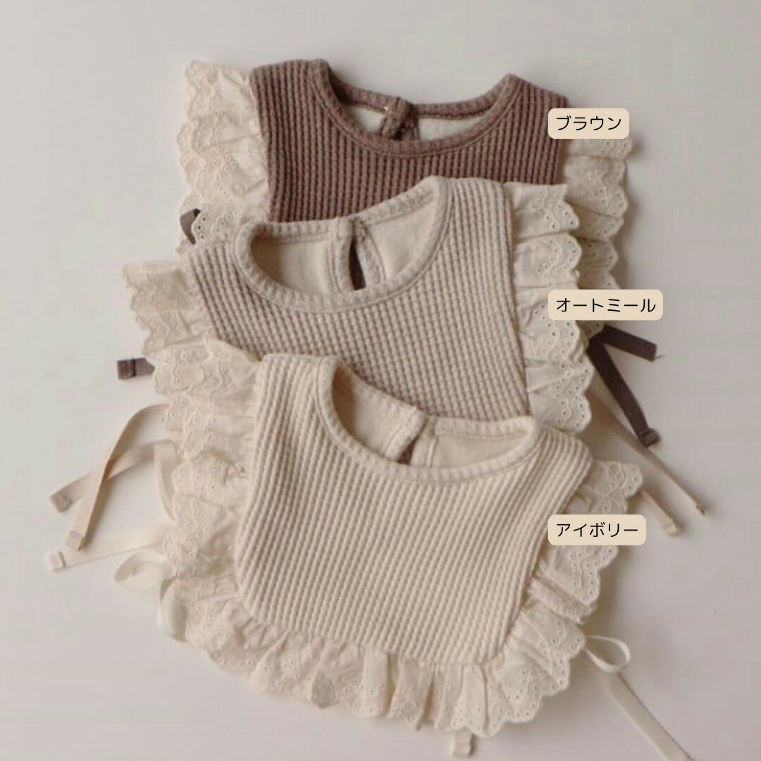 【peekaboo-baby】cookie bib ナチュラルカラー ワッフルフリルエプロン ハーフバースデー スタイ ビブ エプロンコーデ 出産祝い