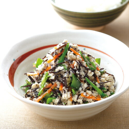 【この商品のここがおすすめ】 国産ひじきを原料とした、ひじき白和えの素です。 お豆腐の水切りは不要ながら、お豆腐と混ぜるだけで簡単に白和えが作れます。 商品名 ≪国産≫ひじき白和えの素 60g(豆腐一丁分)×5袋 原材料 ひじき、果糖ぶどう糖液糖、胡麻、食塩、かつおだし、醤油(大豆・小麦を含む)、魚醤、酵母エキス お召し上がり方 お豆腐1丁と混ぜるだけで、火も包丁も使わずに簡単に美味しい「白和え」の出来上がりです。面倒なお豆腐の水きりも不要で、1〜3分で本格的な味に仕上がります。 賞味期限 常温5ケ月 内容量 60g×5袋 商品の特長 国産ひじきを使用し、化学調味料や保存料は一切無添加で仕上げました。 手間のかかる「白和え」も、お豆腐1丁と混ぜるだけ。面倒なお豆腐の水きりも不要で、1〜3分で簡単に本格的な「白和え」が出来ます。 しっとりタイプの国産ひじきを、おいしく味付けしてありますので、豆腐ハンバーグ・がんもどき・混ぜご飯・卵焼き・サラダ等、アイディア次第でいろいろな料理にお役立て頂けます。 寿物産株式会社について 寿物産株式会社は1977年創業。 のべ300万人以上の方々にご利用戴き、2000万袋を超える販売実績となっております。 親子3世代にわたりご利用頂いているお客様も多数いらっしゃいます。 群馬県学校生活協同組合推薦。保育園、小学校の給食にもご利用頂いている安心のわかめです。 関連ワード 国産 ひじき 化学調味料・保存料無添加 ◆栄養成分表示(100g あたり) エネルギー 278kcal たんぱく質 6.7g 脂質 7.5g 炭水化物 51.6g 食塩相当量 8.9gお豆腐1丁と混ぜるだけで美味しい「白和え」の出来上がり! 時短調理にぴったりな商品です。