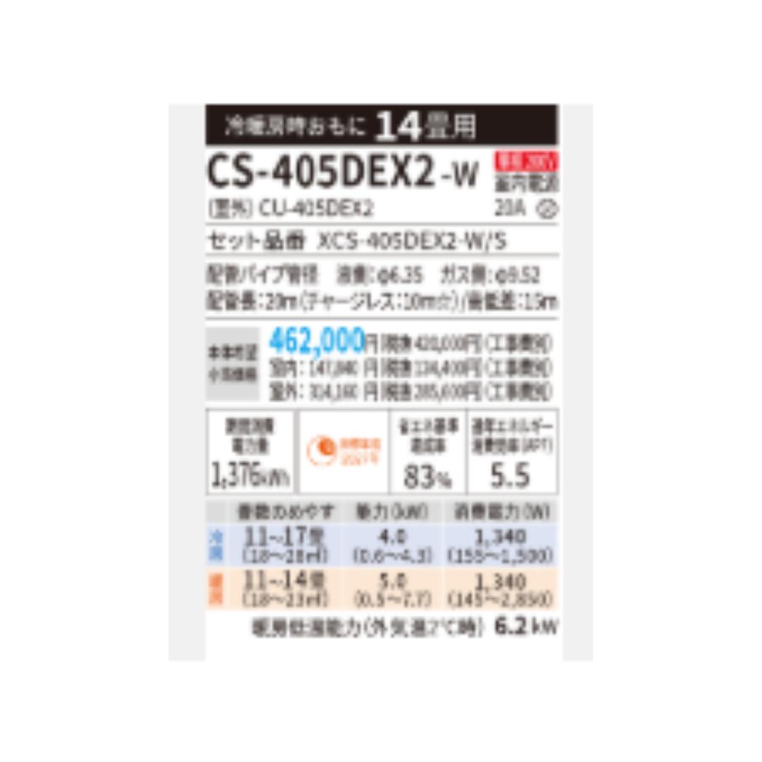 【1111円引きクーポン】 【在庫あり】 パナソニック エアコン CS-405DEX2-W エオリア EXシリーズ 主に14畳用(4.0kW) ※単相200V 送料無料(離島除く)。 北海道・沖縄・一部離島配送不可。2025年モデル