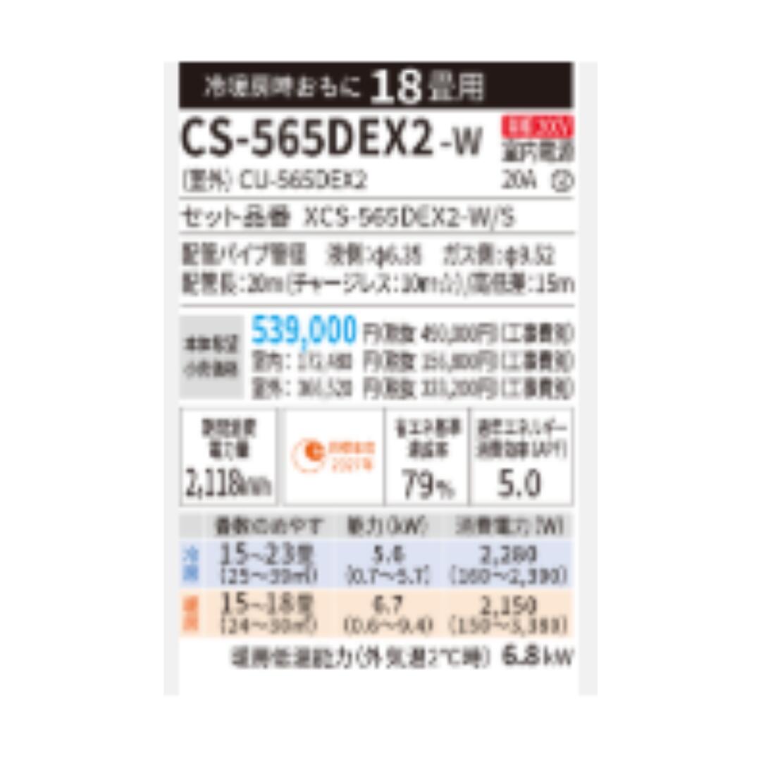 【1111円引きクーポン】 【在庫あり】 パナソニック エアコン CS-565DEX2-W エオリア EXシリーズ 主に18畳用(5.6kW) ※単相200V 送料無料(離島除く)。 北海道・沖縄・一部離島配送不可。2025年モデル