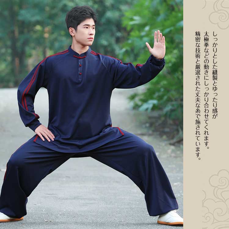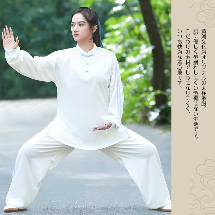 商品詳細 商品名 黄河文化店オリジナル弾力練功太極拳服 素材 弾力シルク絹 カラー 白色、紺色 セット内容 上下セット サイズ S、M、L、XL、XXL 商品説明 肌触りが良くいつも快適な着心地です。気品あふれるデザインを職人の精巧な縫製で仕上げています。動きやすくとても丈夫で、表演服としても練習用としても人気があります。 洗濯方法 ■ 手洗い推奨。洗濯機で洗う場合は、必ず洗濯ネットに入れて洗ってください。 ■ 濃い色のものは色落ちする場合がありますので、他のものと一緒に洗わないでください。 ■ お洗濯の際、塩素系漂白剤・タンブラー乾燥機のご使用は避けてください。 ■ アイロンを使う場合は、低〜中の温度設定で、当て布を上からかけてください。 注意事項 ※お客様の身長と体重のデータを元にお作りするオーダー注文のため、身長と体重を必ずお知らせください。 ※納期は1〜2週間程になります。