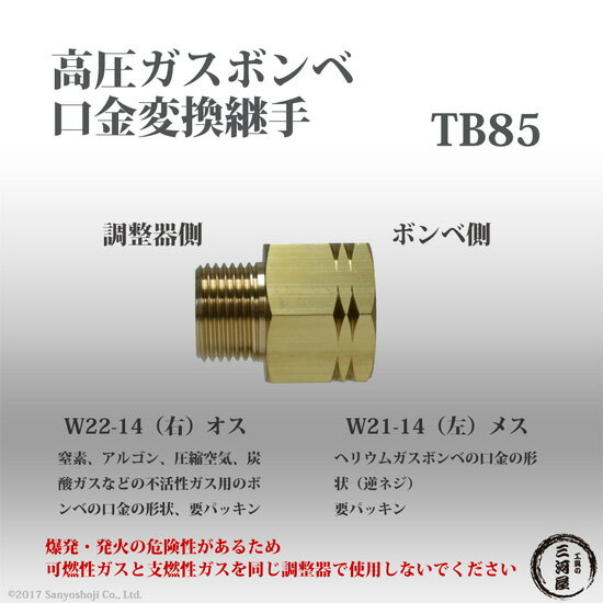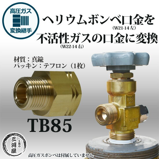 高圧ガス 容器 口金 変換 継手 TB85 ( TB-85 ) 真鍮製 ヘリウムボンベ の口金を 正ねじ に 変換 W21-14(左)→W22-14(右)