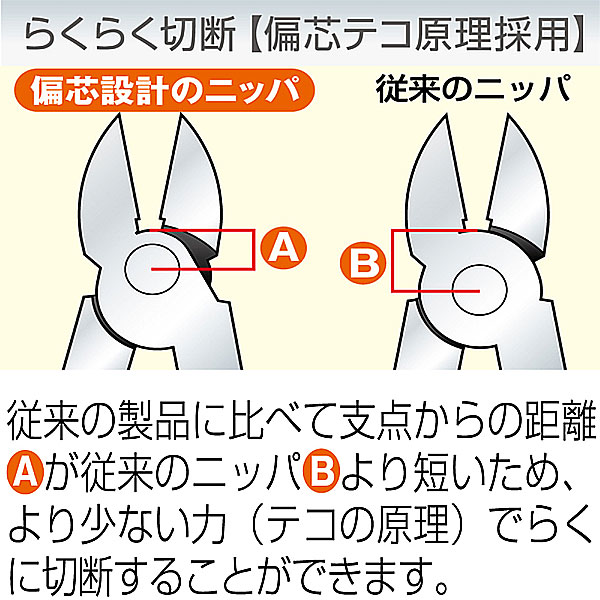 【特長】 ●偏芯テコ機能で従来製品よりも楽に切断できます。 ●落下防止コードが取付けできるシャックルが付いています。 ●圧着機能付きです。 ●黒金シリーズ 【仕様】 ●厚刃 ●切断能力(mm)ピアノ線:φ2.5 ●切断能力(mm)鉄線:φ4.0 ●切断能力(mm)銅線:φ5.0 ●全長(mm):208 ●切断能力(mm)VA線:φ2.0×3芯 ●ばね:無し ●質量:330.0g フジ矢 黒金シリーズ ジャンル 品 番 品 名 寸法mm ニッパ 770-175BG 電工名人強力ニッパ(ラウンド刃・黒金) 175 770-200BG 電工名人強力ニッパ(ラウンド刃・黒金) 200 7700N-175BG 電工名人偏芯薄刃ニッパ(黒金) 175 7700N-200BG 電工名人偏芯薄刃ニッパ(黒金) 200 ストリッパー FVA101-BG VA線ストリッパ(黒金) - モンキー FLP-38-BG パイレンモンキー(黒金・グリップ付) - FLT-34-BG 先薄モンキー(黒金・グリップ付) FLT-38-BG 先薄モンキー(黒金・グリップ付) - FLM-45-BG パワーモンキープライヤー(黒金) - FLA-28-BG ライトモンキー(黒金) - FLA-53-BG ライトモンキー(黒金) - FLS-28-BG ライトショートモンキー(黒金・グリップ付) - FLS-32-BG ライトショートモンキー(黒金・グリップ付) - FLS-43-BG ライトショートモンキー(黒金・グリップ付) - FLS-53-BG ライトショートモンキー(黒金・グリップ付) - プライヤー類 110-250S-BG ウォーターポンププライヤー(黒金・バネ付) 250 110-250SD-BG ウォーターポンププライヤー(黒金・バネ付・ドライバー付) 250 130-200-BG 超軽量ウォーターポンププライヤー(黒金) 200 130-250-BG 超軽量ウォーターポンププライヤー(黒金) 250 230-165-BG 超軽量コンビネーションプライヤー(黒金) 165 230-200-BG 超軽量コンビネーションプライヤー(黒金) 200 210-190-BG 薄型コンビネーションプライヤー(黒金・ベント) 190