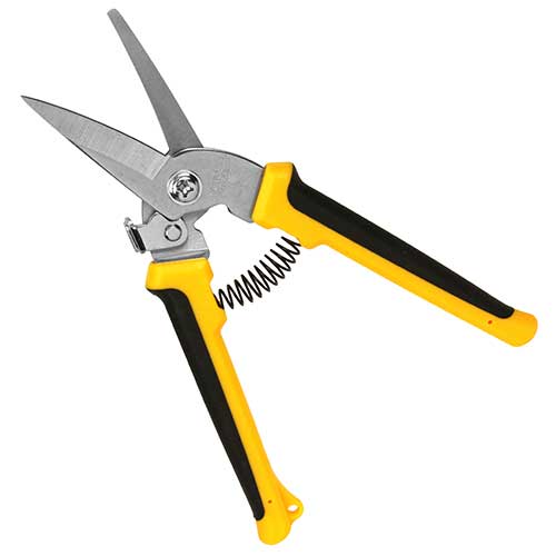 【特長】 ●ステンレス刃はサビに強く、永く切れ味を保ちます ●刃を閉じて収納できるセーフティロック付です ●グリップは手にフィットしやすく設計され、スプリング付で長時間の作業も楽に出来ます ●切断物をキャッチしやすく、刃がにげにくい・作業のしやすいカーブ刃です 【用途】 ●ブリキ・アルミ・エンビ・プラスチック・布・紙・ビニール・金網・針金等の切断 【仕様】 ●切断目安:(アルミ板・プラ板)1.0mm・(銅板・トタン板・ブリキ板)0.5mm ●切断目安:(皮革・ゴム板)約4.0mm・(アルミ線・銅線)直径2.0mm・(針金)直径0.5mm ●刃部硬度:HRC50-52 ●商品サイズ: 幅45×高さ206×奥行き13mm ●重量:180g 【注意事項】 ※ピアノ線や鋼材・鋼線など硬く熱処理された素材には使用できません。 ※刃先にいくほど、切断能力は低下します。硬いもの・厚いものの切断は刃の奥の方で行ってください。 ※鋏の能力以上の切断は刃こぼれや手を痛める恐れがありますので、表示用途以外には使用しないでください。 ※作業時には安全のため、作業手袋・安全メガネなどを着用してください。 ※誤って落としたり、ぶつけたりしますと、変形したりキレツや破損を生ずる場合がありますので取り扱いには充分ご注意ください。 ※刃部にカケやキレツがある場合は使用しないでください。刃部に直接手を触れないでください。 【納期】メーカーに在庫があれば、納期約3〜4日(営業日)で出荷いたします。