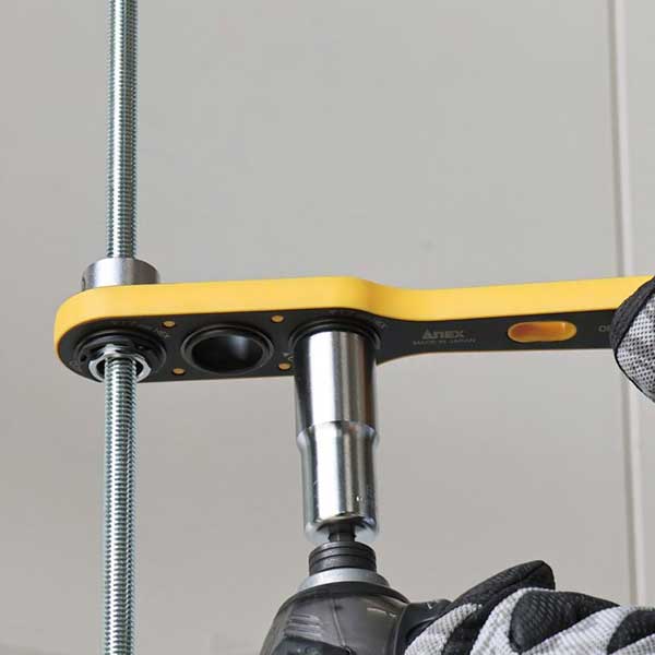 【特長】 ●手回しのスパナしか入らない狭い所のボルト回しを電動で回せるアタッチメント ●建築の胴縁や胴差しなど狭いスペースでのボルト・ナット回し作業に ●内部ギヤ構造が狭い所の奥へ電動ドライバーの力を伝えます ●別売りAOA-17専用ソケットを出力部に取り付ければ、H8~H21までのボルトに対応します ●最大許容トルク230N・m 【用途】 ●電気設備の架台、ダクトレール周りのボルトに 【仕様】 ●全長(mm):215 ●厚さ(mm):16.2 ●幅(mm):38 ●最大トルク(N・m):230 ※型式clickでページ移動します 品番 内容 AOA-17 オフセットアダプター17mm AOA-17S1 オフセットアダプター17mm ソケットセット AOA-1708 H8ソケット AOA-1710 H10ソケット AOA-1712 H12ソケット AOA-1713 H13ソケット AOA-1714 H14ソケット AOA-1717 H17ソケット AOA-1719 H19ソケット AOA-1721 H21ソケット