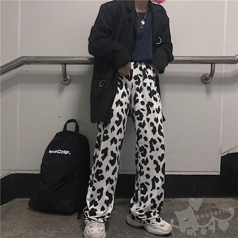 ボトムス ダルメシアン柄 白黒 ワイドパンツ ボトムス ヒップホップ コスチューム 個性的 原宿系 ステージ衣装 練習着 演出服 送料無料